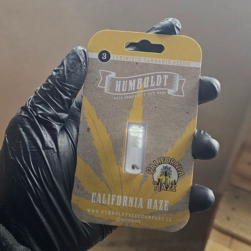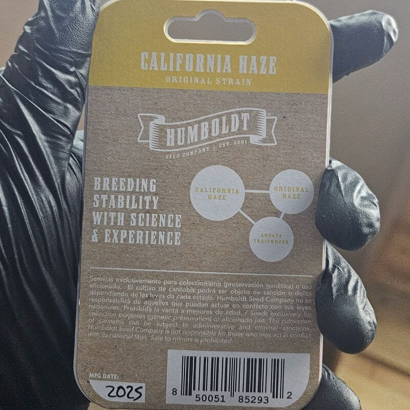 California Haze by Humboldt Seed Company is a feminized, sativa-dominant hybrid bred from California Haze, Original Haze, and Arcata Trainwreck, three of Humboldt’s most emblematic lines. This cultivar embodies the classic West Coast Haze spirit with enhanced disease resistance, strong growth, and remarkably high THC content reaching 25–27%. Plants grow tall with a lance-shaped structure and large, resin-dense colas that emit a complex citrus, pine, and sweet-earth aroma.Indoors, California Haze completes its flowering phase in approximately 67 days, while outdoor growers can expect harvests between October 1st and 10th. The cultivar produces consistently high yields both indoors and outdoors, performing well in soil or hydroponic setups. Its morphology responds favorably to pruning and training techniques like topping or low-stress training to manage height and light distribution. Germination typically occurs within 3–10 days, and seedlings quickly establish vigorous growth under warm, moderately dry conditions.The terpene profile is dominated by limonene and pinene, with sweet undertones that create a fresh and energizing flavor when smoked or vaporized. California Haze is celebrated for its euphoric, uplifting, and creativity-enhancing effects, making it ideal for daytime use or artistic pursuits. Its combination of potency and clarity reflects its balanced Haze and Trainwreck heritage, stimulating without overwhelming. High disease resistance and structural strength make it a suitable choice for beginners as well as seasoned cultivators seeking a reliable outdoor performer. In Humboldt’s catalog, California Haze stands as a continuation of the region’s historic legacy of high-quality hybrids, preserving the essence of California’s pioneering cannabis breeding culture through a modern, stabilized, and high-yielding expression.