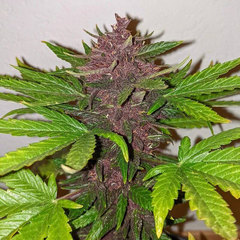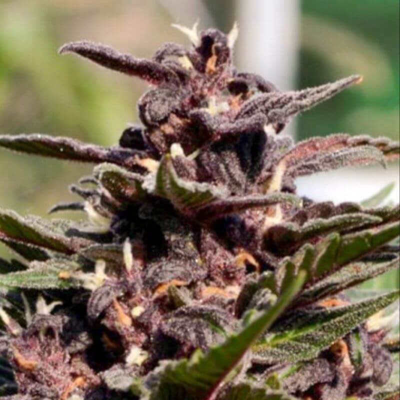 CBD Auto Blackberry Kush by Dutch Passion is a feminised CBD-only autoflower (low THC, normally <1%) combining CBD Charlotte’s Angel with Auto Blackberry Kush to produce compact, bushy plants with bold dark leaves and purple/blue/red, even nearly black, buds coated in a thick white trichome layer and a favorable leaf-to-flower ratio; the aroma is powerful and pungent with mainly earthy and fruity (berry) notes plus pine and citrus nuances, while flavor is sweet, fruity and earthy with forest-fruit tones. Seed-to-harvest typically takes ~11–12 weeks indoors (range 10–13 weeks; faster phenotypes possible in very stable conditions), with early trichome production and very sticky buds; she does well at 20/4 light, forms a large central bloom with many frosty side flowers, and is best grown naturally or in SOG: topping/fimming is not recommended, though plant bending/supercropping can be used to manage height. The plant is compact with short–medium internodes, thick/stiff branches and leaves, and round, dense buds; yields are XL for the size class, generally ~450 g/m², up to ~500 g/m² in SOG, with single plants averaging ~25–75 g and higher on hydro under powerful LEDs. Outdoors, she fits small spaces (balcony, garden pots) and prefers the hottest, driest summer months; greenhouse cultivation is generally not recommended without electricity/ventilation due to the compact buds’ higher susceptibility to bud rot and fungi in wet periods, so protection (lean-to/roof) is advised during extended rain. Effects are non-psychoactive (no high) with a soothing physical and mental relaxation, described as a clear, relaxed “CBD buzz”, suited to users seeking low-THC cannabis; the cultivar is positioned for beginners and experienced growers alike. Seeds are offered as a feminised autoflower.