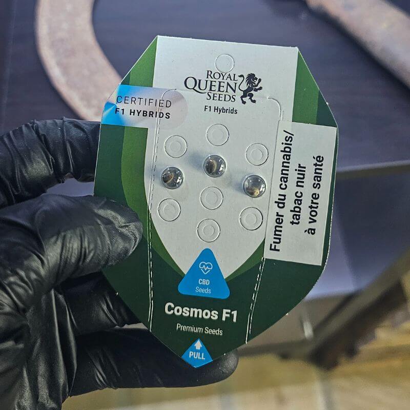 Cosmos F1 by Royal Queen Seeds is a high-CBD autoflowering true F1 hybrid developed from a CBD-rich Oregon lineage, representing one of the tallest and most vigorous F1 cultivars in the breeder’s catalog. The plant grows to a height of 70–100 cm, forming a sativa-dominant structure with elongated branches, light-green foliage, and multiple bud sites that develop into long, wispy flowers. Cosmos F1 completes its life cycle in 75–85 days from germination, with flowering lasting 45–55 days. Its genetic stability ensures uniformity across all plants, expressing hybrid vigor that enhances growth rate, resistance, and structural integrity. The cultivar’s terpene profile, dominated by farnesene, limonene, myrcene, and pinene, produces a refined aroma combining cookie sweetness, peppery sharpness, and pine freshness. Containing up to 0.5% THC and very high CBD levels, Cosmos F1 provides clear-headed, meditative, and physically grounding effects that promote relaxation and focus without intoxication. This balanced expression makes it ideal for growers seeking therapeutic or wellness-oriented flowers with consistent morphology and performance. Cosmos F1 thrives both indoors and outdoors, performing reliably in short-summer climates while maintaining exceptional resilience and structural balance characteristic of true F1 hybrid breeding.